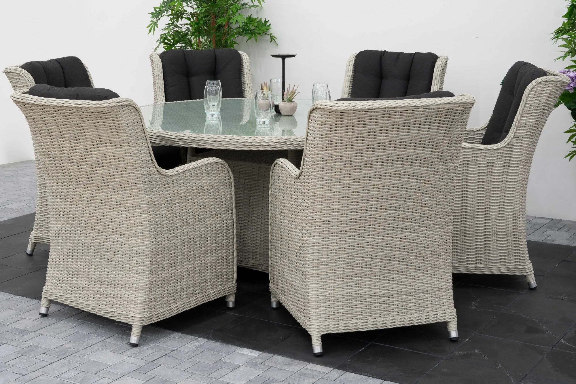 Host garden parties and weekend lunches in style with this six-seater set featuring a 1.5m round table and Lazy Susan. Designed for convenience and elegance, the rotating centre makes sharing food effortless. Each chair is designed with deep cushions and high backs for lasting comfort. The half-round weave and sturdy frame ensure long-term durability, even with frequent use. A standout choice for entertainers, this set balances sophistication with practicality.