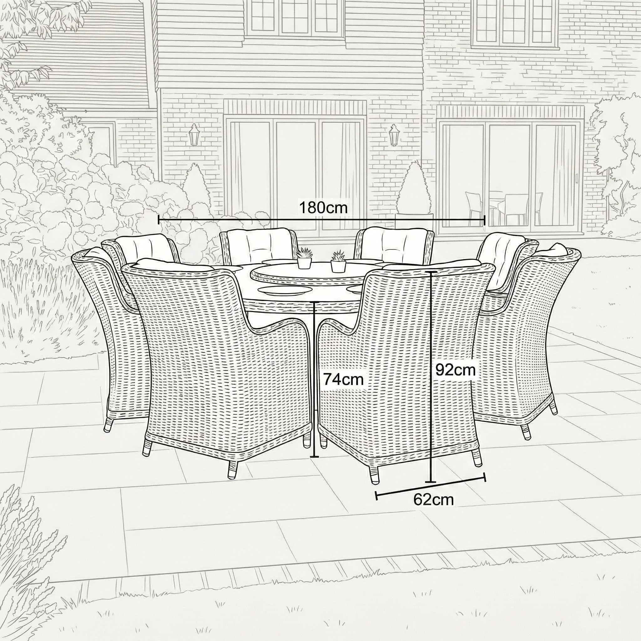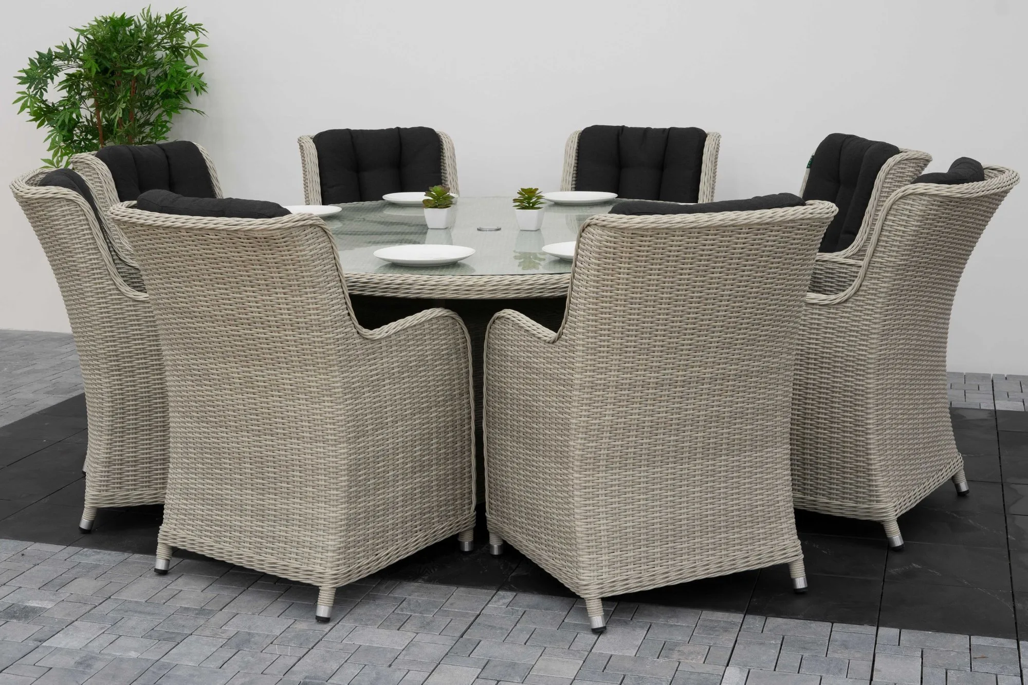 Create a show-stopping outdoor dining experience with this expansive eight-seat arrangement. The 1.8m round table offers ample space for food, drink and décor, while the built-in Lazy Susan keeps everything within easy reach. Each seat is padded for comfort and constructed for strength, making it ideal for long alfresco meals. The set’s muted ash grey tones bring a calming elegance to any garden setting. Perfect for large families or frequent hosts who want to make the most of their outdoor space.