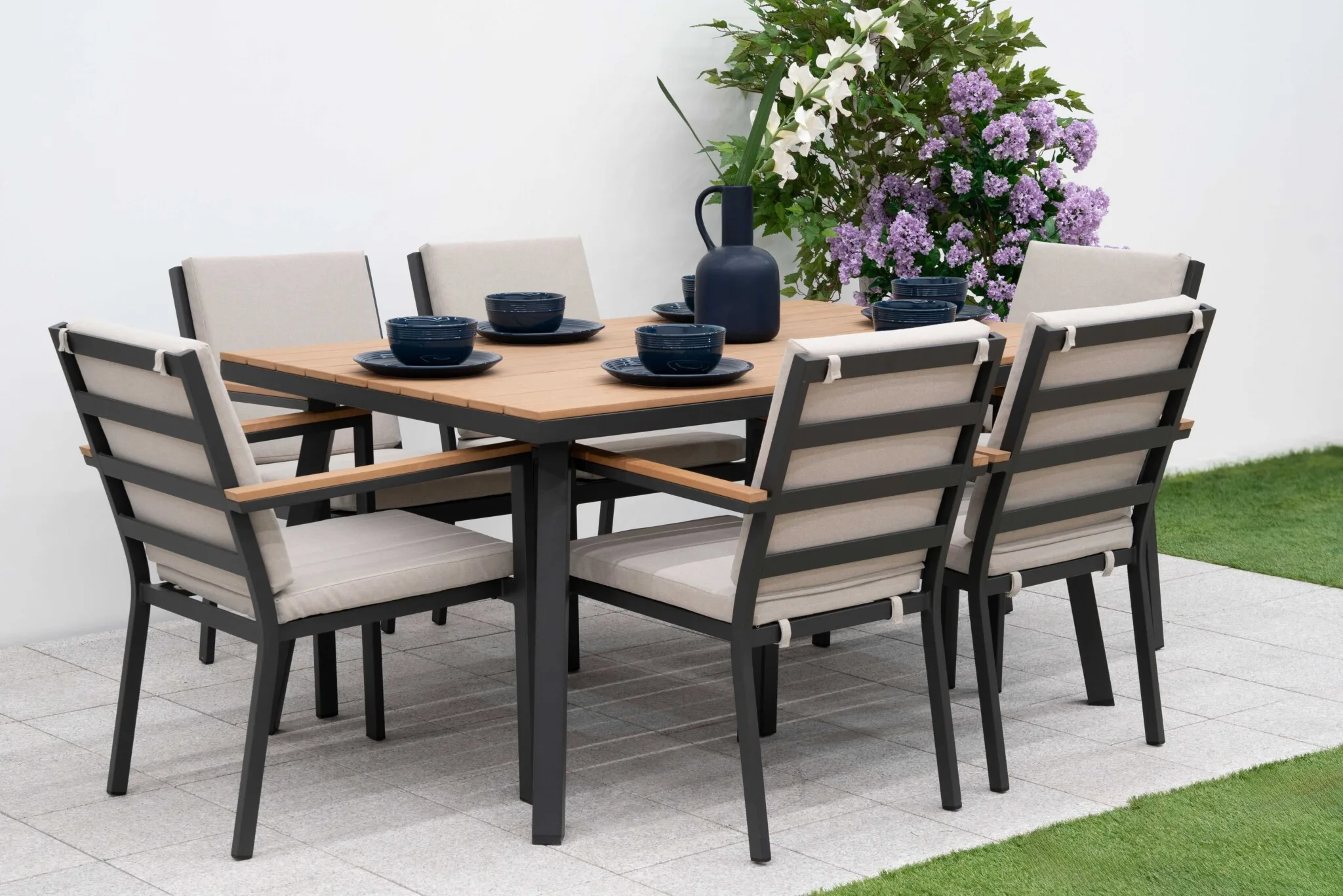 Elevate your outdoor experience with this high dining set, complete with a generous 1.8m rectangular table. Perfect for more informal dining or entertaining, the taller seating brings a social, café-style feel. Crafted with robust aluminium and rope finishes, it blends resilience with refined design. The weatherproof cushions add a luxury touch, ensuring everyone stays comfortable for hours. A great choice for those who like a fresh take on alfresco dining.