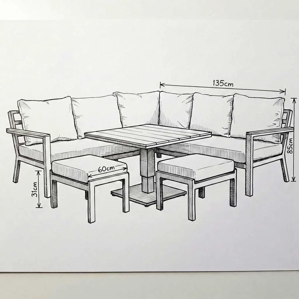 This clever corner set offers full flexibility for dining and lounging in one smart solution. The rising table can be adjusted between coffee table height and dining level, making it suitable for every occasion. Thick cushions and ergonomic frames ensure a luxurious seating experience, while the rope and wood-look aluminium finish enhance the modern design. Ideal for mid to large patios, it’s a sophisticated way to make the most of your outdoor space.