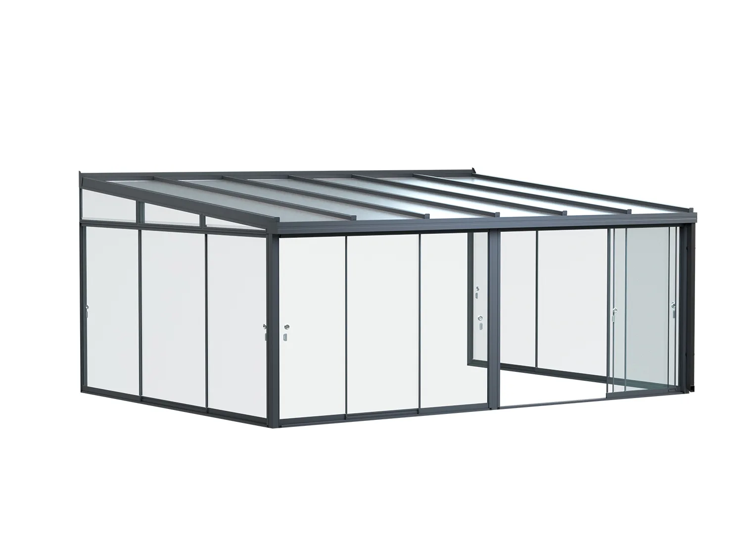 The Simplicity 35 glass room extension offers long-lasting protection to homeowners. Its aluminium frame and polycarbonate roof panels help let natural light into any home. You can even add optional sliding to create a larger and open space.
